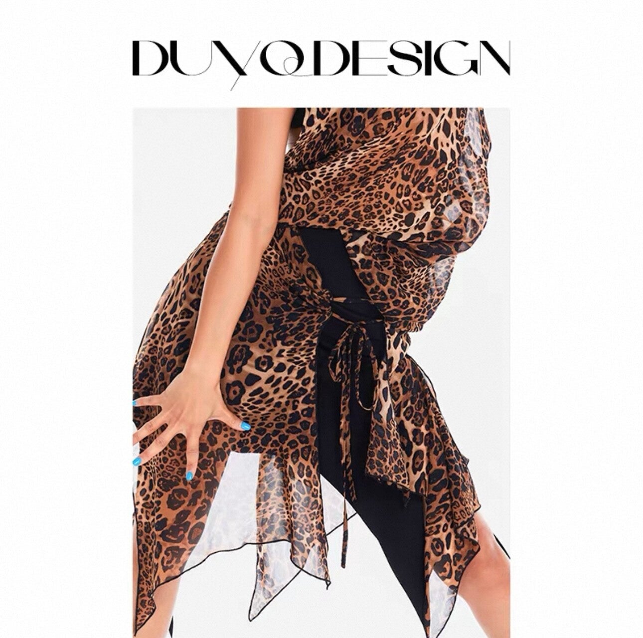 DUYQ Women's Leopard Latin & Rhythm Practice Skirt