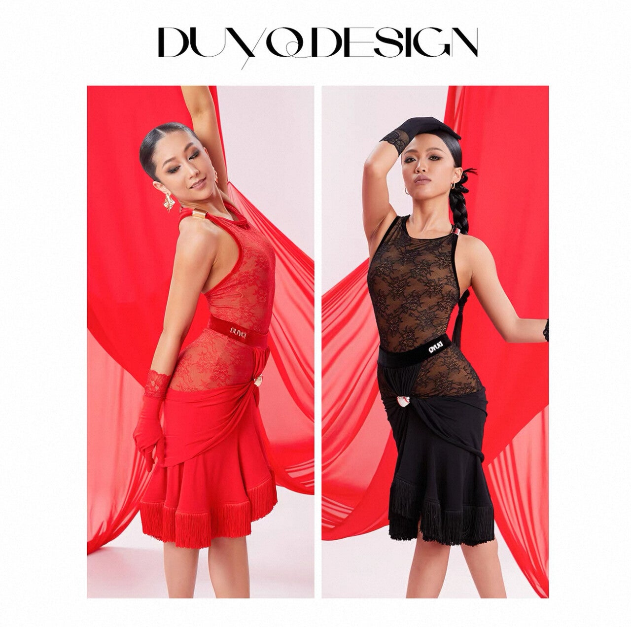 Both skirts have lace and gold detailing.