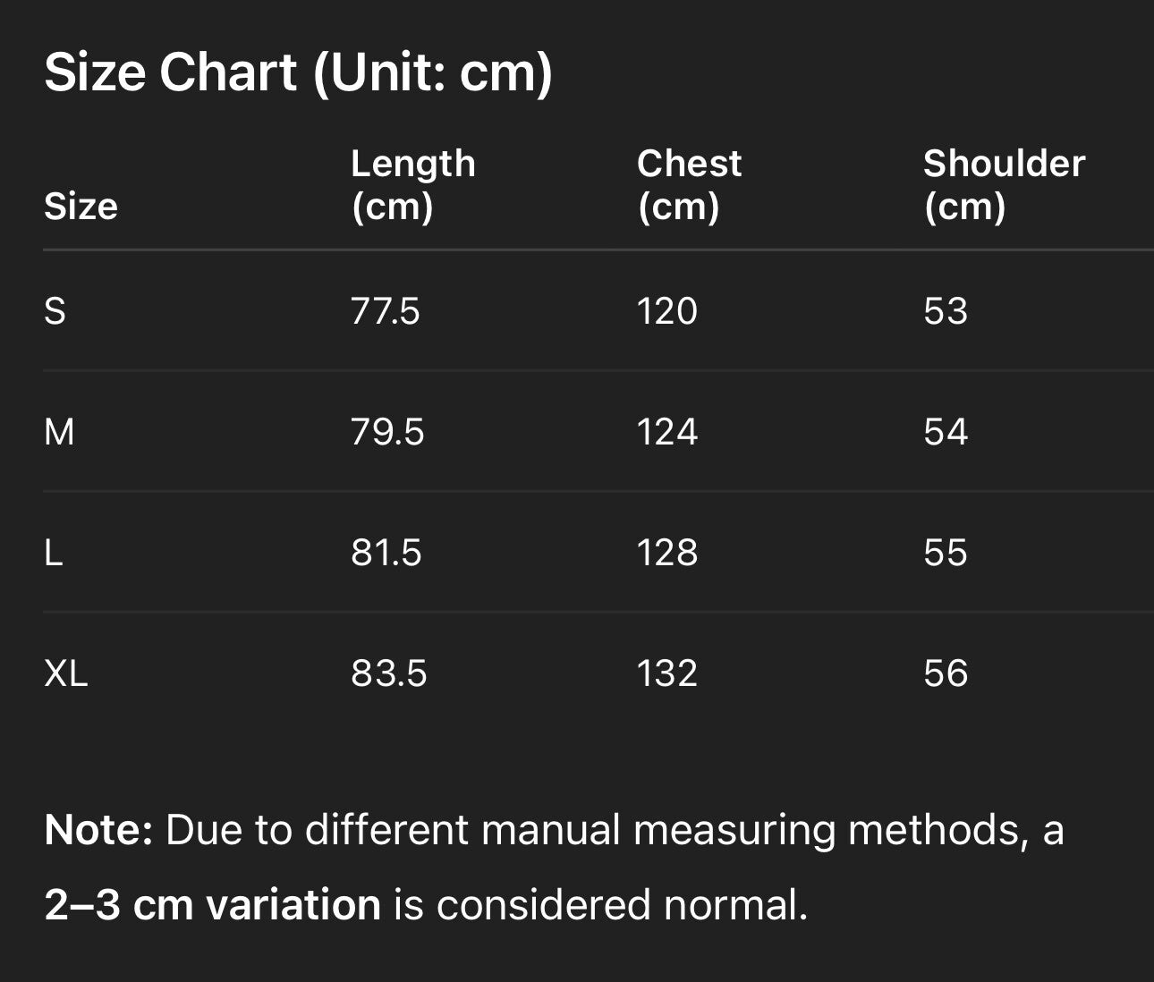 • Wearing Size: L